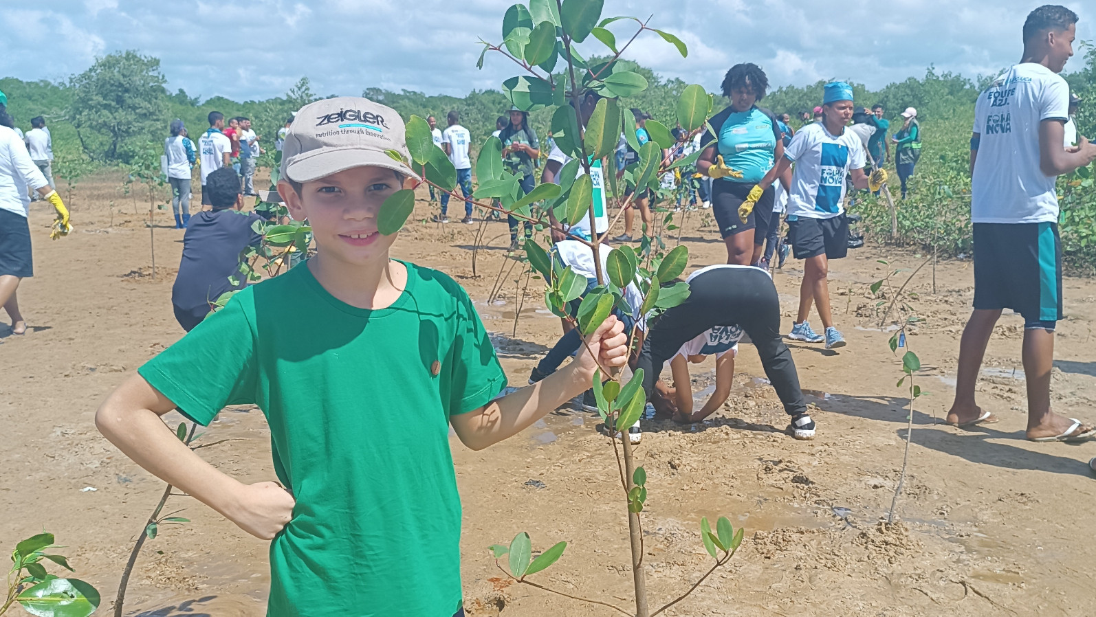 “Mangue é vida. Então, o impacto é positivo. Uma muda dessa, por exemplo, tem mais de 1,65 metros. É maior do que eu. No ato do plantio já tem um grande efeito para o ambiente, a natureza e para as espécies que estão no local. Além de trazer a recuperação ambiental, essas plantas vão proporcionar as pessoas o contemplar da beleza do manguezal”,