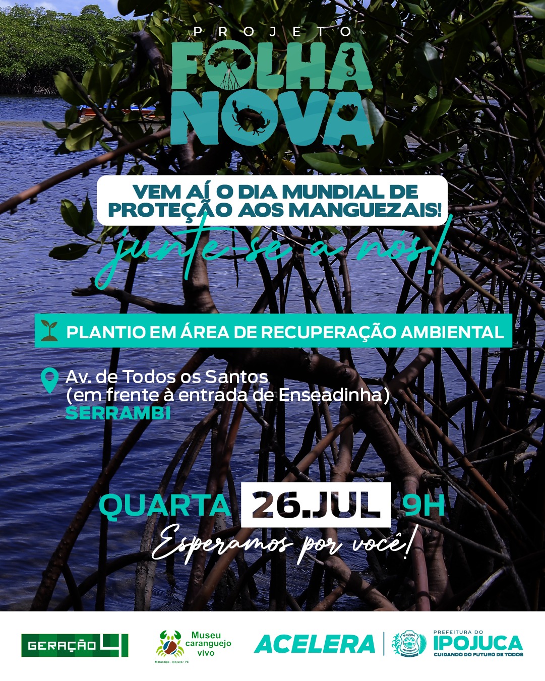 Hoje no município do Ipojuca estado de Pernambuco, o PROJETO MUSEU CARANGUEJO VIVO, Prefeitura do Ipojuca com suas secretarias envolvidas; Secretaria de Meio Ambiente e Controle Urbano, Assistência Social e Instituto Geração 4 realizamos o plantio numa área de 500m2 de mangue branco área de estudo específica que faz parte do Centro de Pesquisa do Projeto Museu Caranguejo Vivo (fundado em 2017).